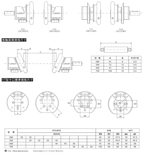 • 快速安全夾頭是為連續動作的卷軸(氣脹軸)提供快速、準確、簡易、安全有效的連接裝置,避免卷軸在運作過程中松動或旋緊。它可分為軸座式和法蘭式兩種安裝方式,并可選擇各種形式的卡口,配合各種氣脹軸使用。廣泛應用于分條、印刷、復卷、涂布、貼合、制袋、電子電池、橡塑等相關卷取機械行業。