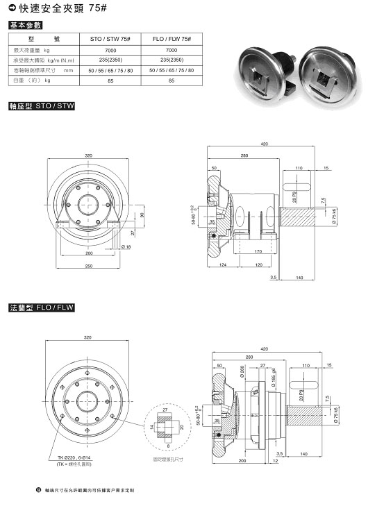 快速安全夾頭是為連續動作的卷軸(氣脹軸)提供快速、準確、簡易、安全有效的連接裝置,避免卷軸在運作過程中松動或旋緊。它可分為軸座式和法蘭式兩種安裝方式,并可選擇各種形式的卡口,配合各種氣脹軸使用。廣泛應用于分條、印刷、復卷、涂布、貼合、制袋、電子電池、橡塑等相關卷取機械行業。